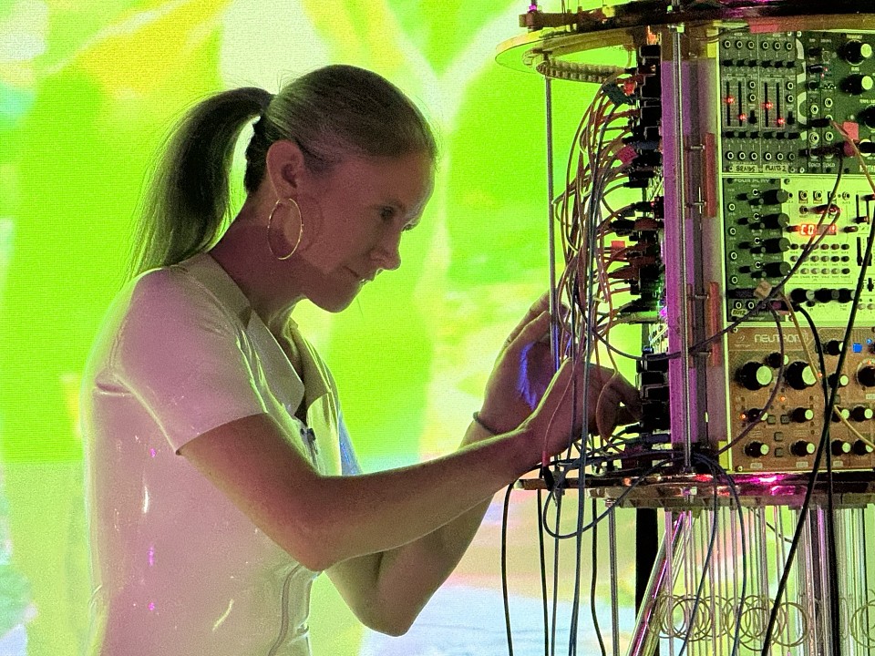 Mentufacturer takes the stage next, and at first it all sounds a bit like generic techno, but within a few short minutes the sound warms up, with playful joyous hooks weaving among the beats. Plenty of heads (mine included) are nodding along in approval to this. It’s an addictive brew that refuses to be pigeonholed in any particular genre. I’ll call it uplifting Electro.